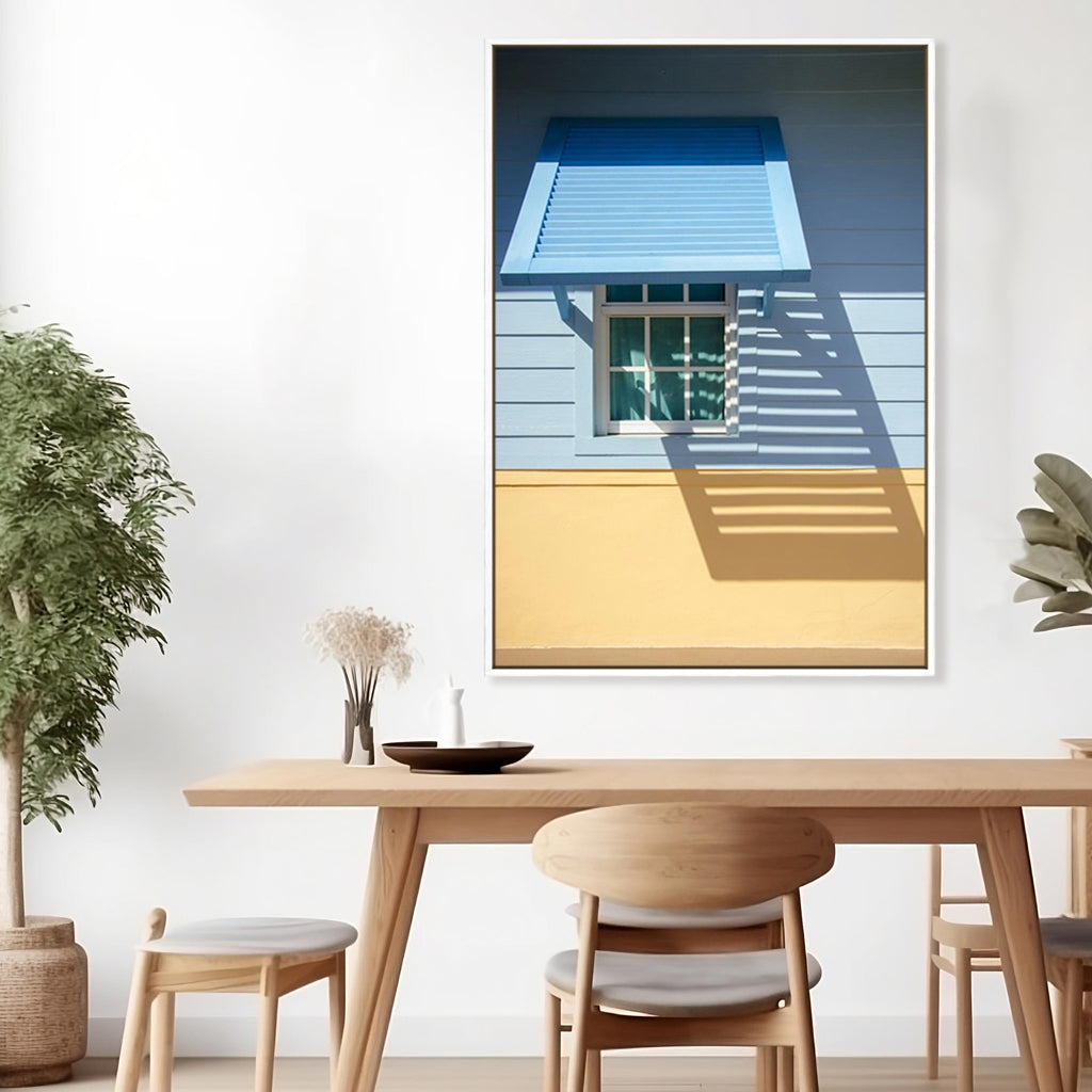 Shop Beachtown Blues I framed wall art: bright beach house with blue shutters. Adds a summery vibe. On sale now at Artey.
