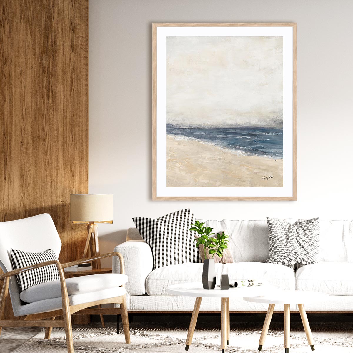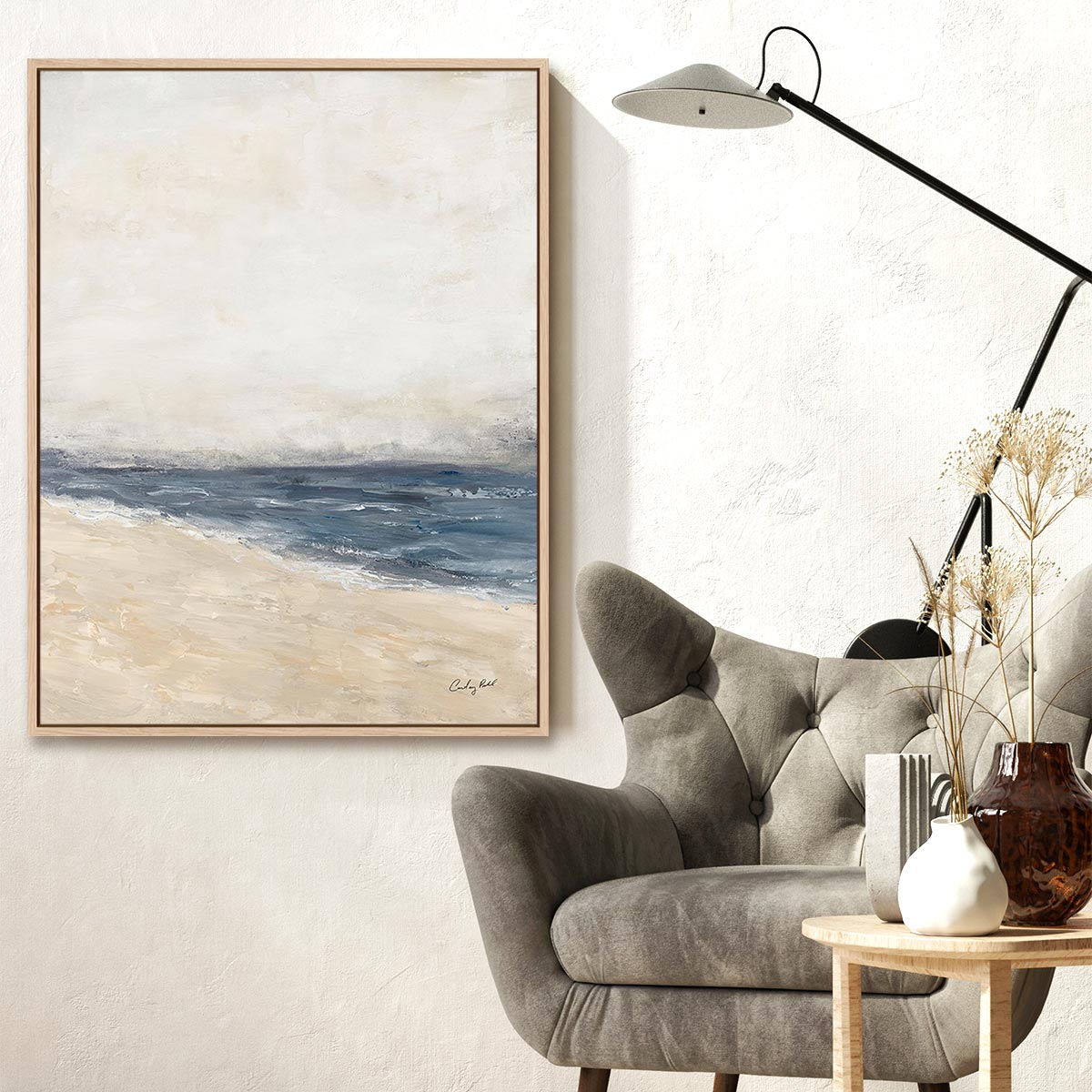 Buy Beyond the Sea coastal canvas art: Serene seascape with calming blue and cream tones. Brings a peaceful vibe to your space. Sitewide sale now at Artey.