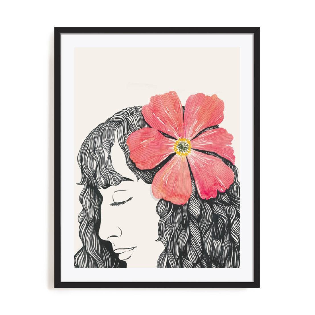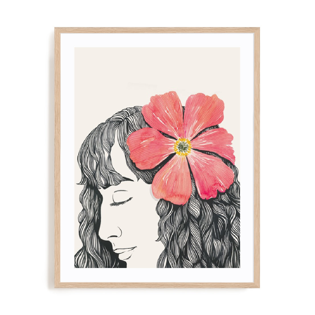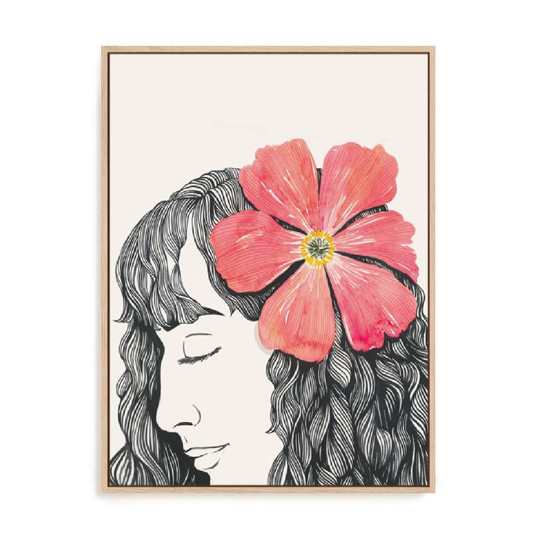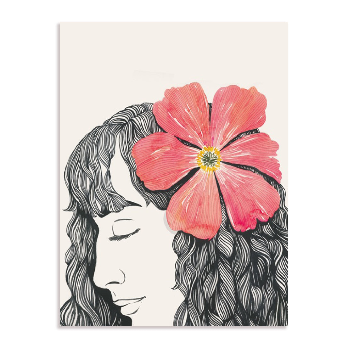 A harmonious blend of monochrome elegance and floral vibrance, Flower in Her Hair II captures the soft serenity of a closed-eye moment. The detailed black-and-white linework of the female portrait is contrasted with a vivid coral flower, evoking both delicacy and strength. Printed on high-quality canvas using long-lasting giclée ink, this framed fashion artwork is ready to hang and made to last. Ideal for adding quiet sophistication to a living room or entry space, its perfect for those seeking affordable framed prints with artistic flair. Embrace the poetry of this image and let it tell your story on the wall.
