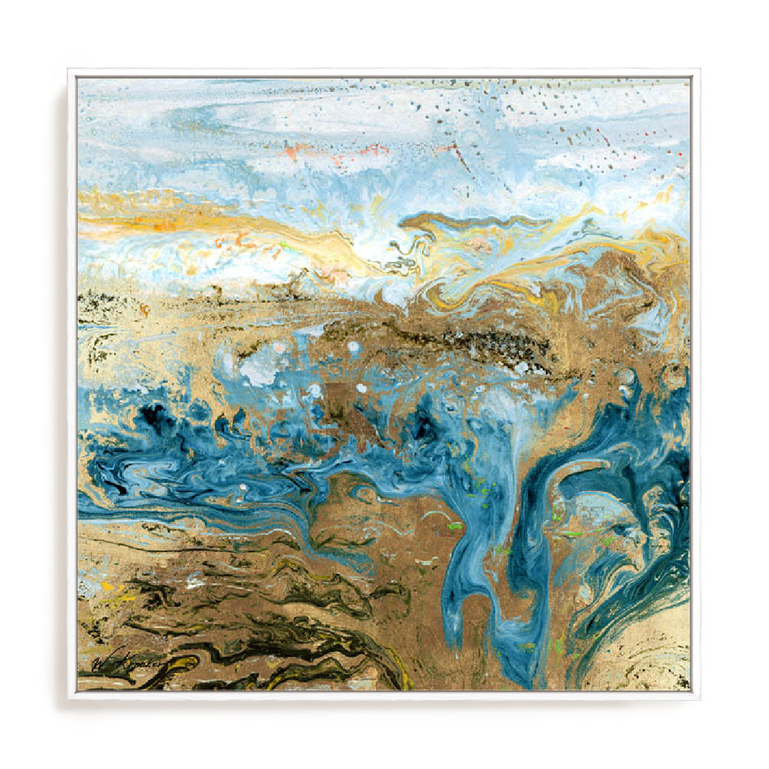 Geode III blends soft mineral textures with refined geometry: blue currents ripple through cream, edged with glints of gold that add quiet luxury. The layered paintwork suggests polished stone while the composition stays minimal and modern, making it easy to style in both contemporary and classic rooms. Locally produced using premium giclée printing and framed by hand in sustainable timber, this ready-to-hang piece reflects Artey’s commitment to quality and accessible art in Australia. Inspired by geologic formations and the meditative rhythm of erosion, it invites calm focus—perfect for a living room, home office or library. Keywords: modern abstract wall art, contemporary geometric print, affordable framed prints Australia, framed wall art Australia, ready-to-hang art.