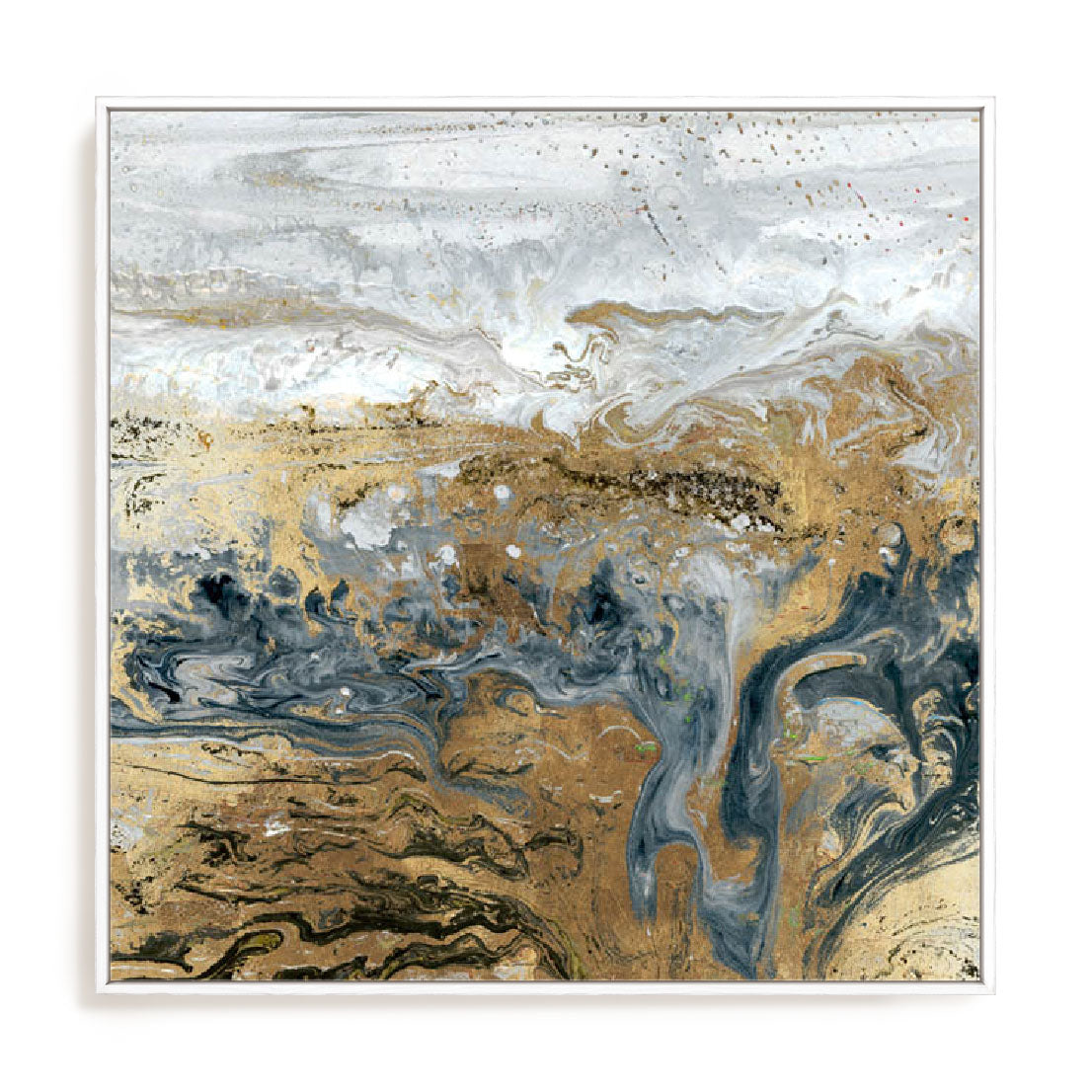 Depth and drama meet polished elegance in Geode III Indigo. Luminous indigo currents sweep across cream and gold, echoing the veining of crystalline stone while staying firmly in the realm of modern abstract wall art. Thick, fluid brushwork and softly marbled textures add movement, giving the piece a luxurious, mineral glow. The effect is grounding yet refined—ideal for interiors seeking a strong focal point without visual clutter. Printed in Australia using premium giclée inks on archival stock and finished in a handcrafted, FSC-certified frame, this ready-to-hang art celebrates sustainable craftsmanship and licensed design. Inspired by geologic cross-sections, it partners beautifully with dark timber, brass accents and textured linens. Place it in a bedroom, entry or study to create a contemplative pause. Keywords: modern abstract wall art, contemporary geometric print, affordable framed prints Australia, ready-to-hang art, framed wall art Australia.
