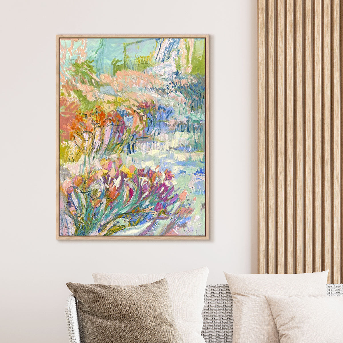 Shop Heavenly Day II landscape wall art at 50% off: A soft, abstract landscape that brings tranquillity to your living room. Personalise your space and differentiate your living room, bedroom, hallways or office space among the rest without over
