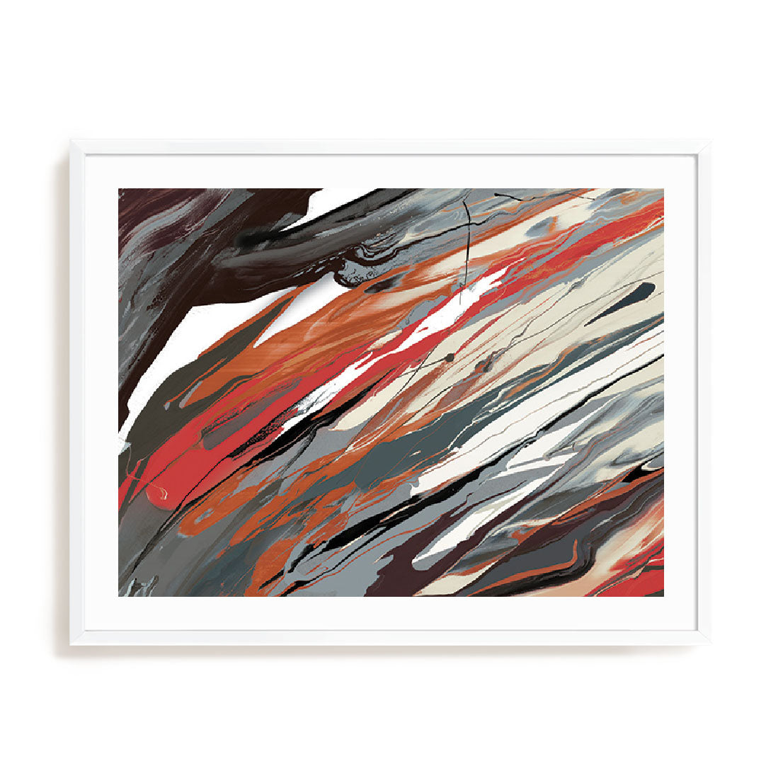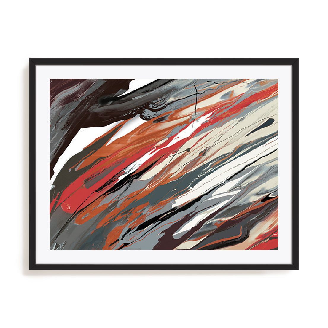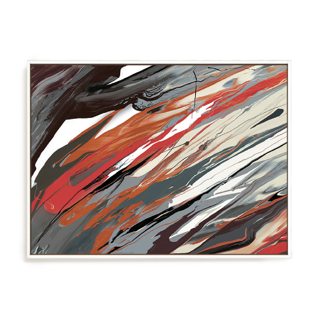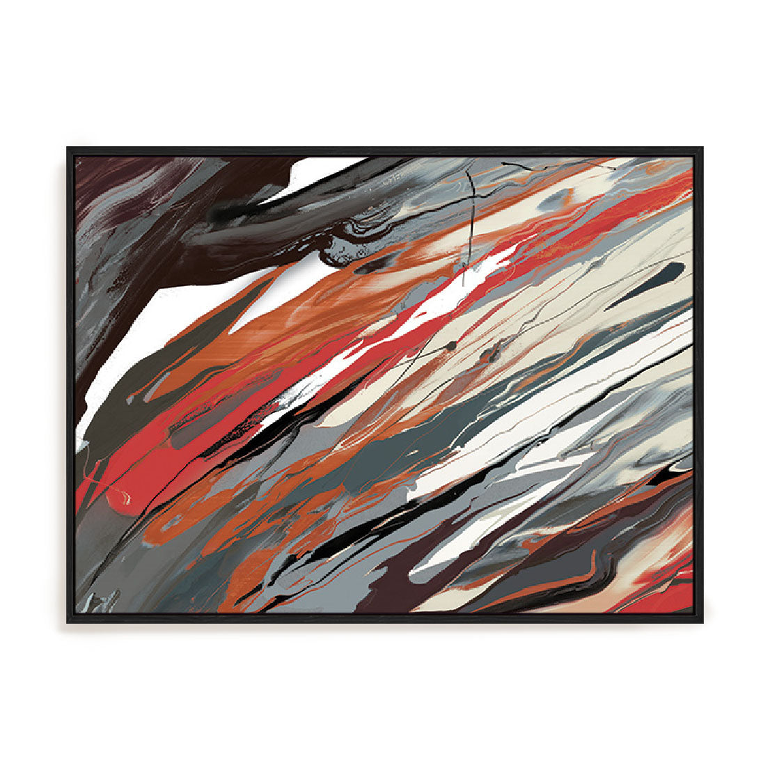 Bold and dynamic, Like Rain IV surges with streaks of burnt orange, black, and charcoal layered across a canvas of shifting movement. Its gestural energy captures the unpredictability of rainfall, yet its palette provides warmth and grounding. The combination of fiery tones with neutral grey and ivory accents creates visual tension, making the piece both commanding and sophisticated. Crafted with giclée printing and framed by hand in Melbourne, this licensed artwork combines sustainability with premium quality. Free delivery Australia-wide ensures it is accessible without compromise. Best placed in a dining room or entryway, Like Rain IV energises the space while providing modern abstract sophistication.
