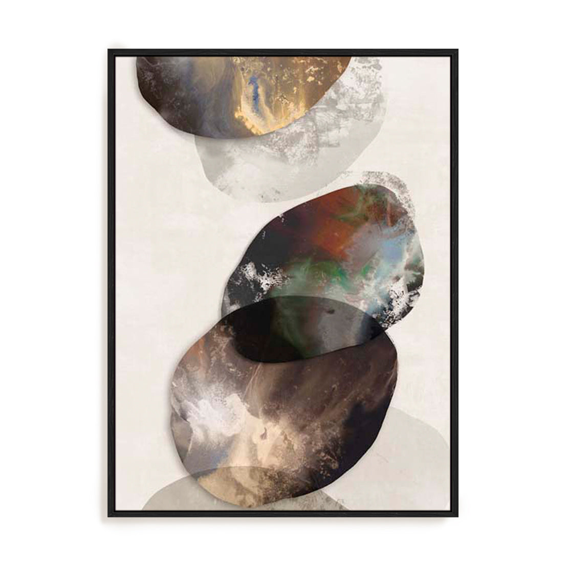 Building on the expressive depth of its companion piece, Metallic Fusion II explores balance and form through layered earth-inspired tones. With undulating edges, soft transparencies, and rich charcoal contrast, this composition brings both weight and mov