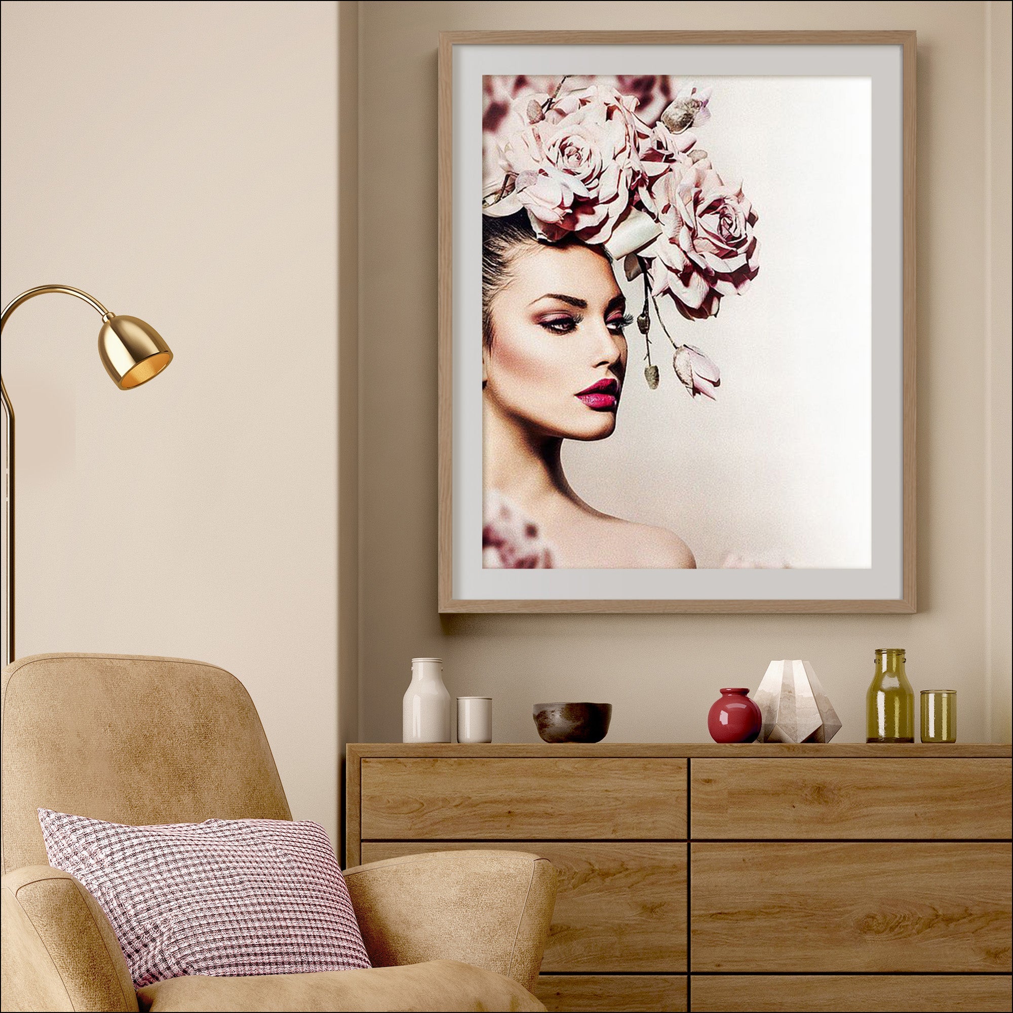 Shop Rose wall art | Elegant portrait of a woman with a floral headpiece. On sale 50% off, free shipping at Artey.