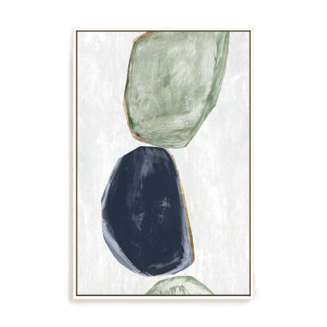 With its understated composition, Stones II Blue Version evokes a mood of balance and quiet reflection. The artwork showcases overlapping stone-like forms in sage green and navy blue, softened with textured brushstrokes. Minimalist yet expressive, the design creates a meditative energy that fits seamlessly into modern interiors. This piece is a natural choice for those seeking abstract art that soothes without overwhelming, offering a versatile aesthetic for both bedrooms and living spaces. Crafted with premium giclée inks on sustainable materials and framed by hand, it reflects Artey’s commitment to quality and craftsmanship. Licensed and Made in Melbourne, it is delivered ready-to-hang with free shipping Australia-wide. Blending modern abstract wall art with a sense of serenity, Stones II Blue Version is a timeless addition to curated spaces.