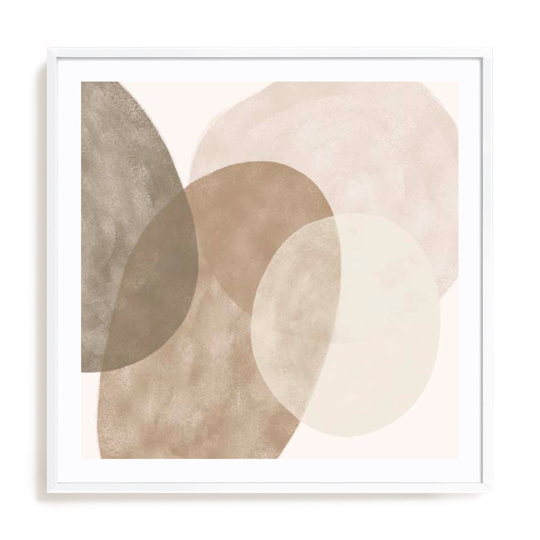 Watercolour Shapes I' offers quiet harmony in earthy simplicity. Rounded organic forms in soft taupe, mocha, and warm cream gently overlap in a subdued dance. The hand-painted texture and minimalist composition give this piece a grounded, tranquil energy.